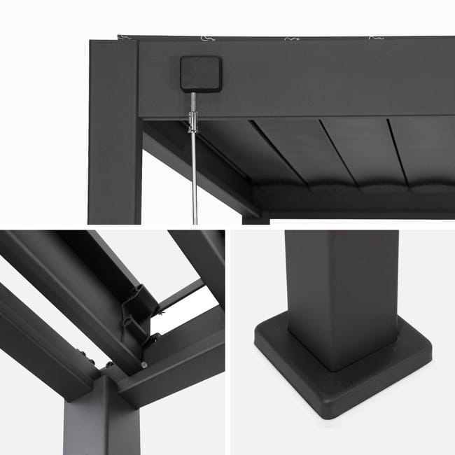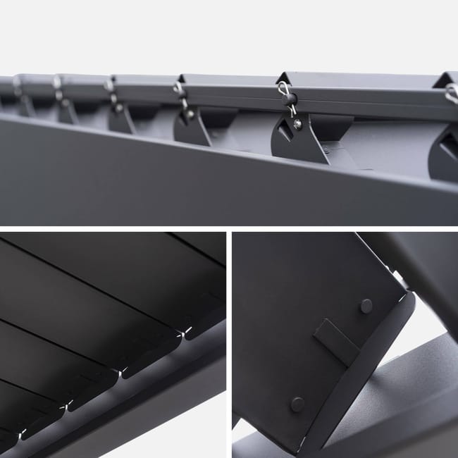 Passez des moments agréables et conviviaux dans votre jardin grâce à la pergola bioclimatique Triomphe. En hiver, vous serez protégés de la pluie et en été, vous pourrez profiter de son ombre et de sa fraicheur. Elle se fixe dans le sol, c’est donc un système permanent. Pas besoin de la ranger, vous en profiterez tout au long de l’année. Conçue avec une structure en aluminium de qualité (encadrement + pieds) avec des lames en acier galvanisé, cette pergola est un investissement sur le long terme. L’aluminium est un matériau idéal pour l’extérieur, il ne rouille et résiste aux intempéries et aux rayons UV. Cette pergola est donc robuste et demande très peu d’entretien, elle pourra rester dans votre jardin pendant de nombreuses années !