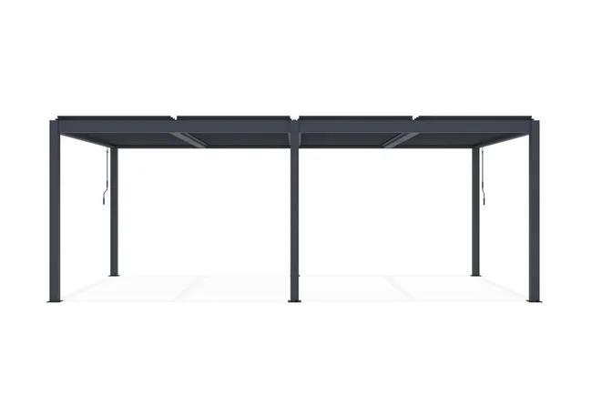 Résistantes aux intempéries, vous serez protégé efficacement de la pluie tout comme des rayons du soleil, une fois le toit fermé. L’eau s’évacue par les poteaux et une gouttière centrale qui permettent de rester au sec même sous la pluie.