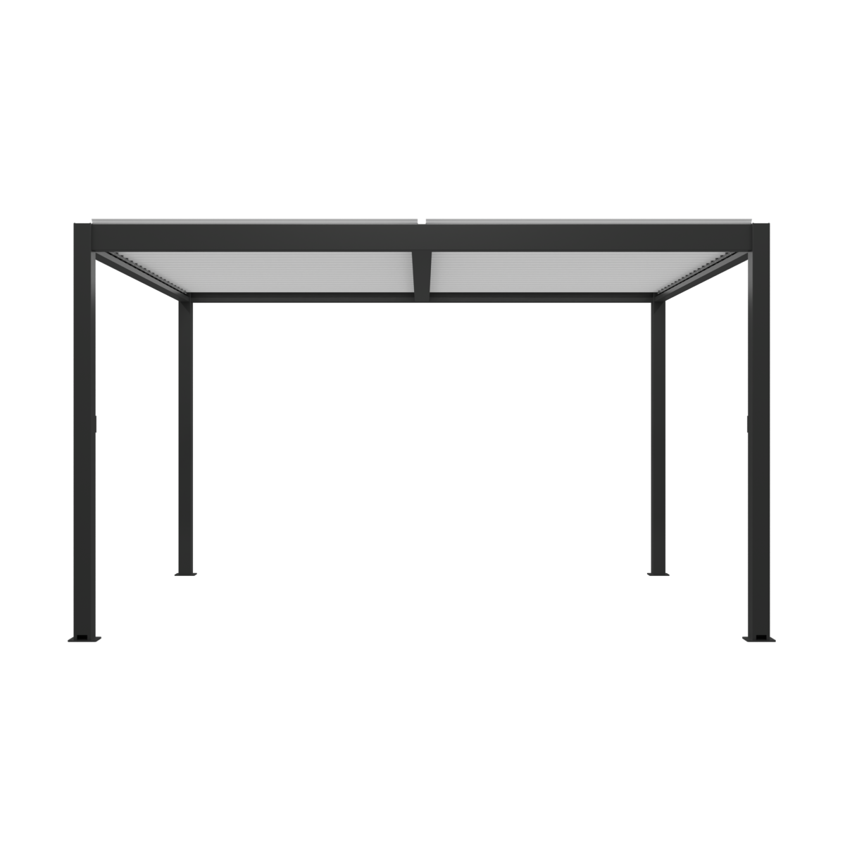 La structure de la pergola Port Pin: des poteaux solides de 100 x 100 mm et un système bioclimatique avec une ouverture manuelle des lames. Le tout en aluminium. Vous pouvez retrouver toutes les caractéristiques techniques dans l’onglet “Informations techniques”. Un montant central complète la toiture: 2 traverses de lames indépendantes l’une de l’autre composent le toit.