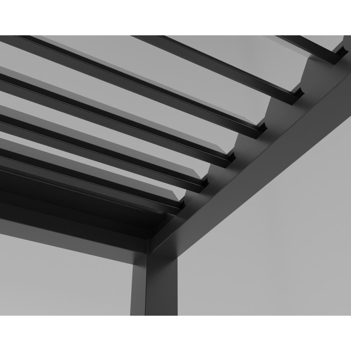 La structure de cette pergola bioclimatique Port Miou est disponible en version autoportante (4 poteaux) ou adossée avec un système de fixation au mur (2 poteaux) dans les dimensions suivantes: