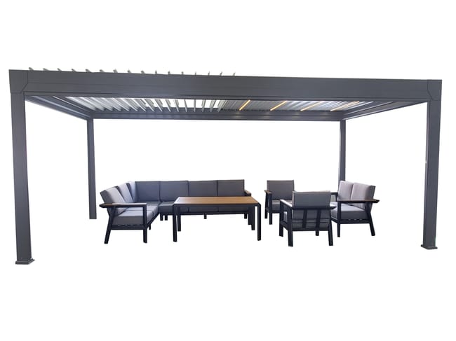 Pergola bioclimatique motorisée autoportante gris 6X3 + led Menea GREEN OUTSIDE