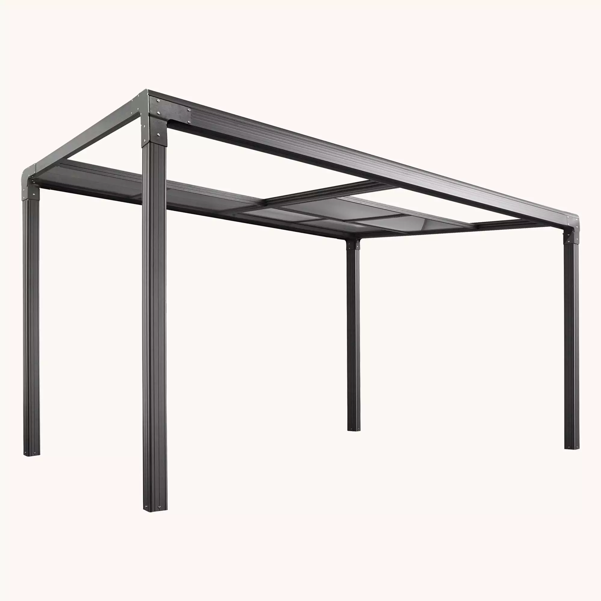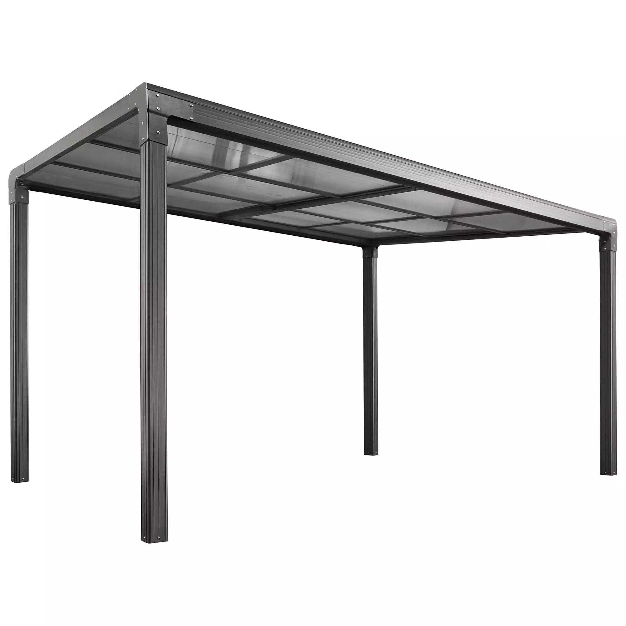 Le toit en polycarbonate gris transparent, résistant aux UV, permet une transmission optimale de la lumière tout en offrant une protection fiable contre le soleil et également contre la pluie. Avec une fonction coulissante pour réguler la circulation de l’air, ce toit amovible offre une solution polyvalente.