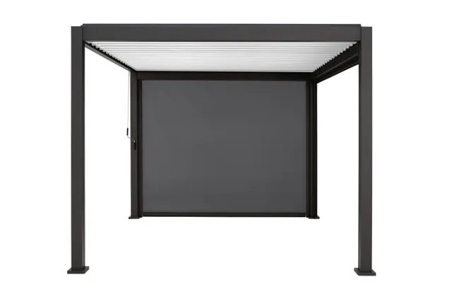 Store livré à l’unité. Profitez de bons moments à l’extérieur lors de vos journées ensoleillées à l’abri du soleil et des regards. Ce store de couleur gris anthracite est un rideau déroulant conçu spécifiquement pour la pergola Prima. Facile d’utilisation, il vous suffit de baisser le store manuellement pour adapter l’ombrage sur votre terrasse. Vous pourrez ainsi réguler de manière optimale l’ensoleillement en fonction de vos souhaits. Ce store est résistant avec son encadrement en aluminium et sa toile en polyester enduite pvc. Il est facile à installer grâce aux fixations prévues à cet effet sur la structure de la pergola Prima. Pour l’entretenir, il vous suffira de le nettoyer avec un chiffon humide et du savon. Nous vous conseillons de démonter le store lorsque vous n’utilisez pas la pergola pendant une longue période afin d’augmenter sa durée de vie. En cas de fortes intempéries, il est conseillé d’enrouler le store complétement afin qu’il reste protégé.