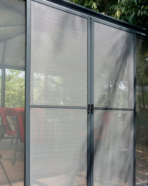 • Châssis robuste, résistant à la rouille et fabriqué en aluminium et des connecteurs en acier galvanisé. • Deux doubles larges portes coulissantes verrouillables, pré-assemblées, pour un écoulement et un passage d’air idéal. Peuvent être assemblées sur l’un ou l’autre des quatre côtés • Deux parois latérales fixes en verre acryliques à haute résistance aux chocs, résistants aux rayons UV nocifs, facile à nettoyer, maintient une transmission de lumière élevée et s’intègre parfaitement avec n’importe quel design de maison et environnement extérieur., peuvent être assemblées sur l’un des quatre côtés. • Panneaux de toiture en polycarbonate bronze à double-paroi de 6 mm, pratiquement incassables, maintiennent leur intégrité, fournissent un blocage complet des UV nocifs. Ils ne se décolorent pas, ne se fracturent pas et ne deviennent pas fragiles avec le temps. • Prêt et facile à assembler par soi-même. • Système de gouttière intégrée permettent de canaliser et de recueillir l’eau de pluie